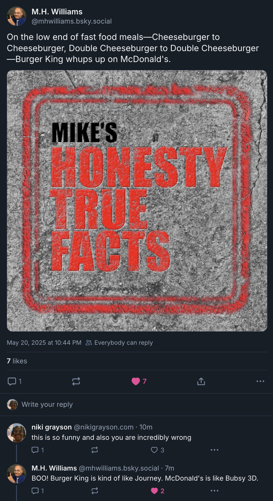 but then i thought about it and like? do i even remember why i think the burger is bad? i haven't refreshed that thought in a while. so i asked myself the age old question: