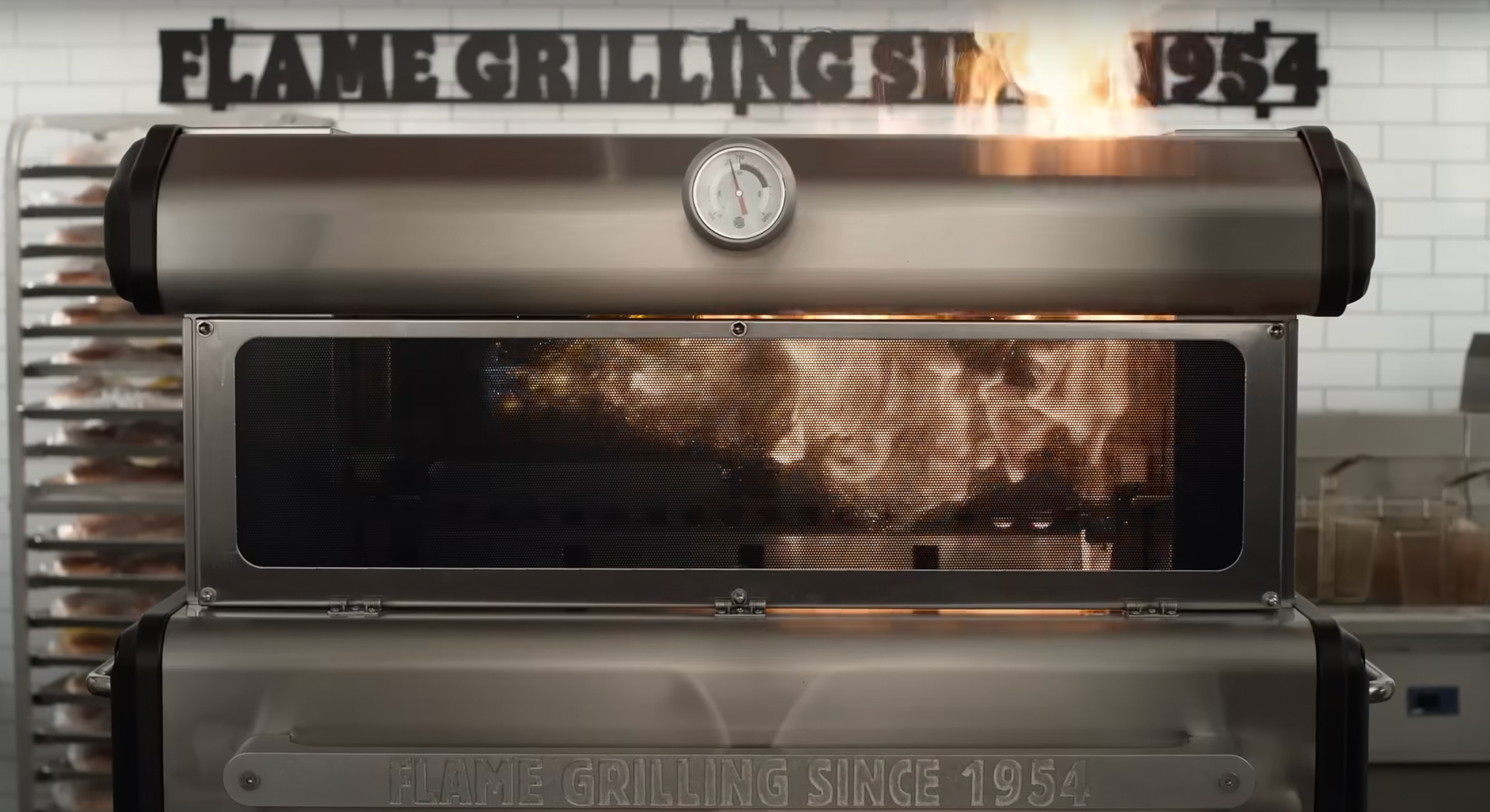 that's the machine they cook the burgers in. it is on fire all of the time. the burgers move on a conveyor belt through the flame box and come out on the other side cooked. how could every single bite of the burger be cold? infuriating.